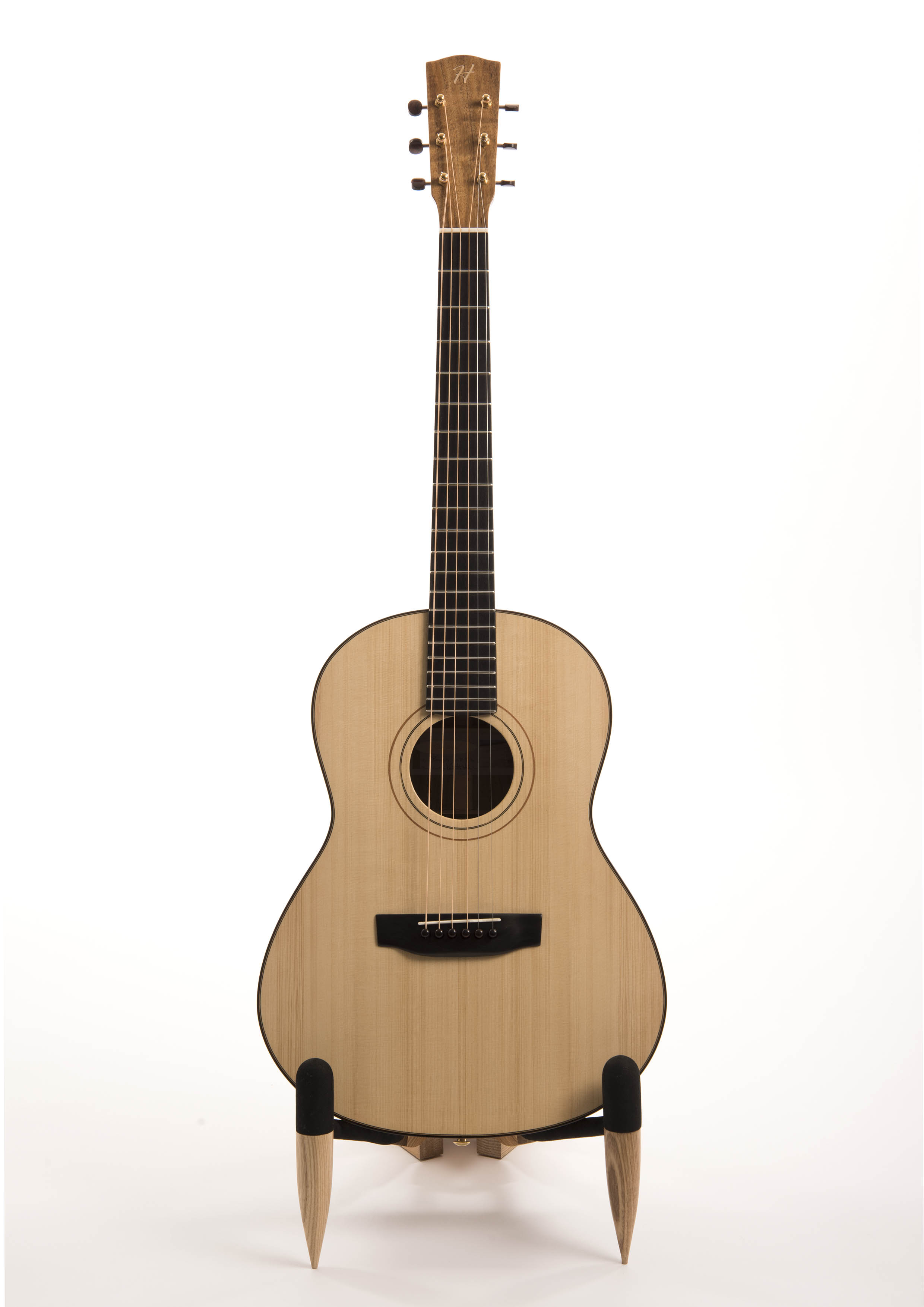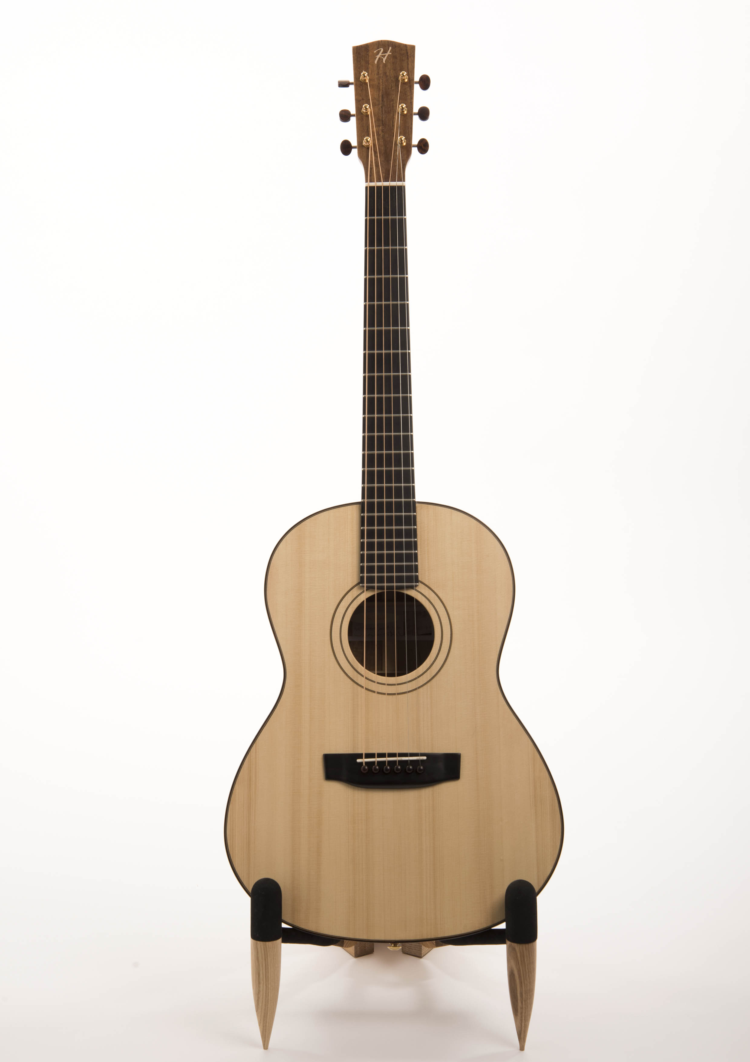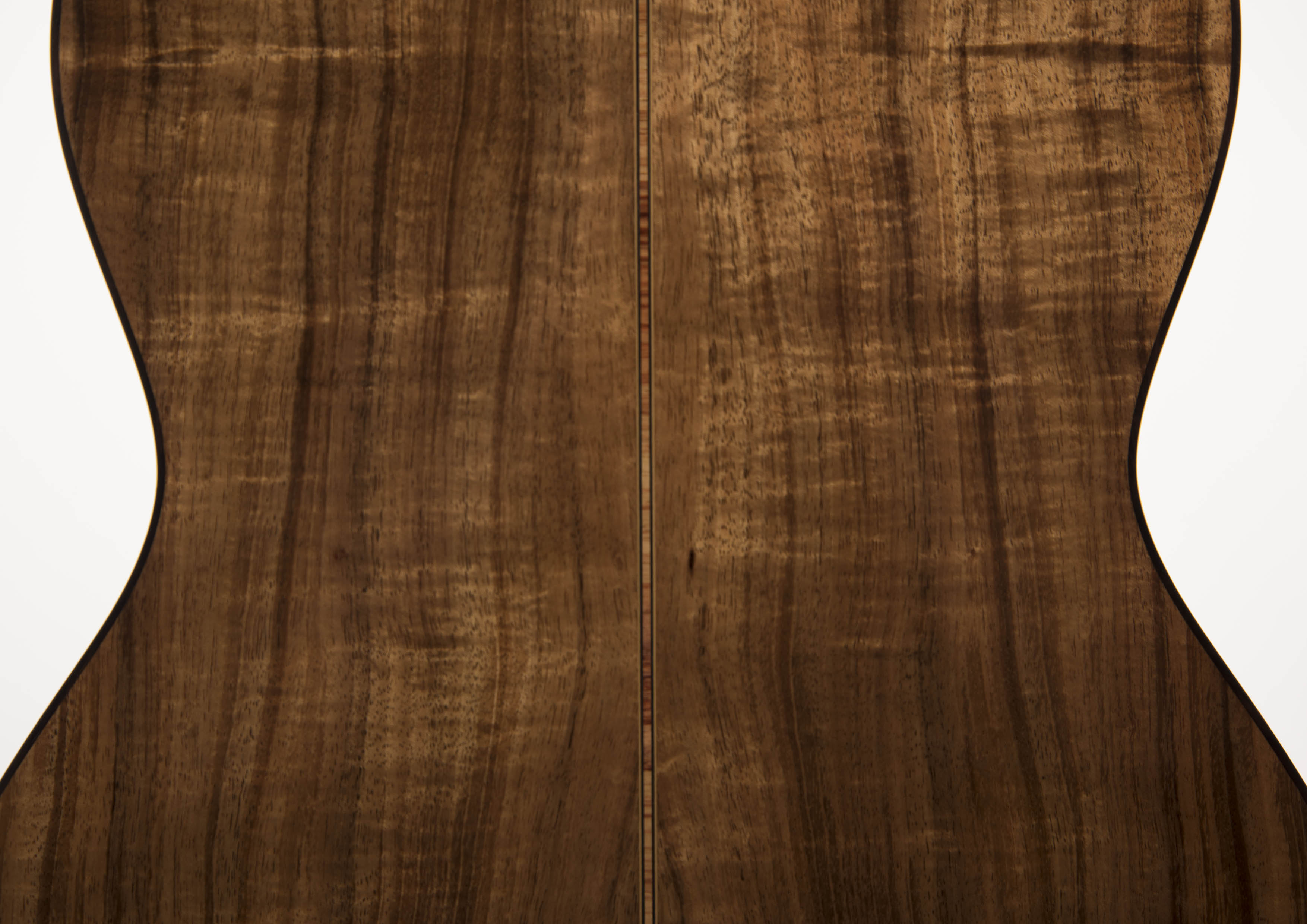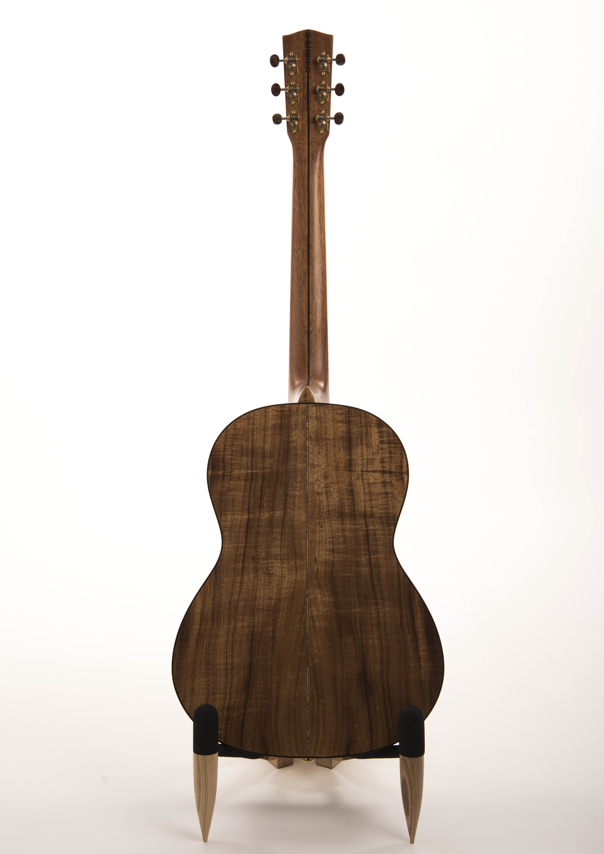 We decided upon the “Burns” body size but made some subtle changes to my standard model. We went for Adirondack Spruce tops coupled with Tasmanian Blackwood back and sides, a five piece neck and a hybrid bracing system on the soundboards. The depth of the body was also increased slightly as well as a larger sound-hole to match.