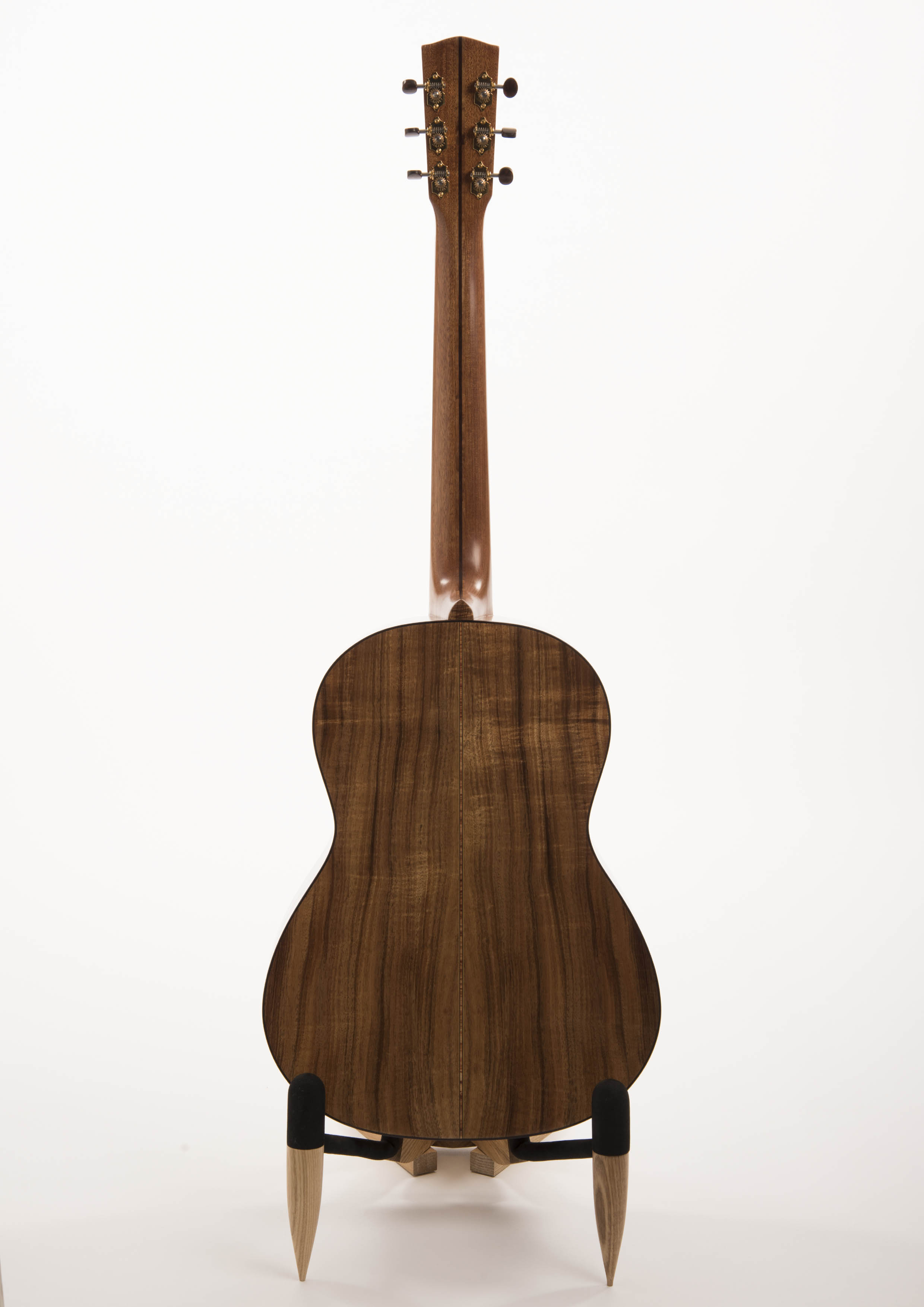 These two guitars have been a long time in the making! They started out as an idea hatched between myself and my very good friend Doug Carroll. We wanted to have a pair of matching guitars(almost!) to play when we were performing together as Wood and Wire. The material we play ranges from traditional Scottish/Irish songs to hard strummed Rock covers and everything else in between. Finger style features a lot in our repertoire so we needed guitars which we could comfortably play in this style and open tune without loosing any clarity or suffer any tuning issues.