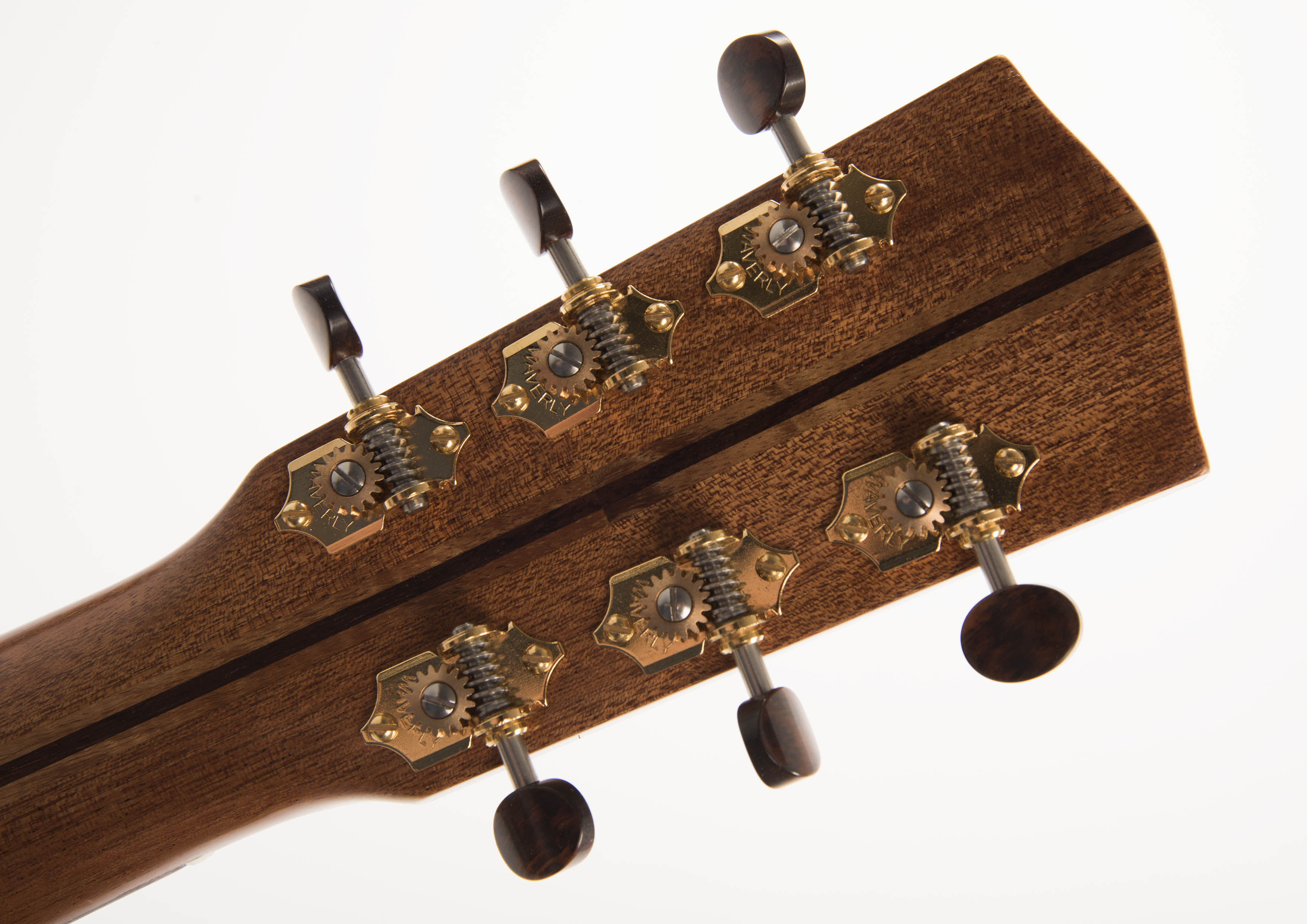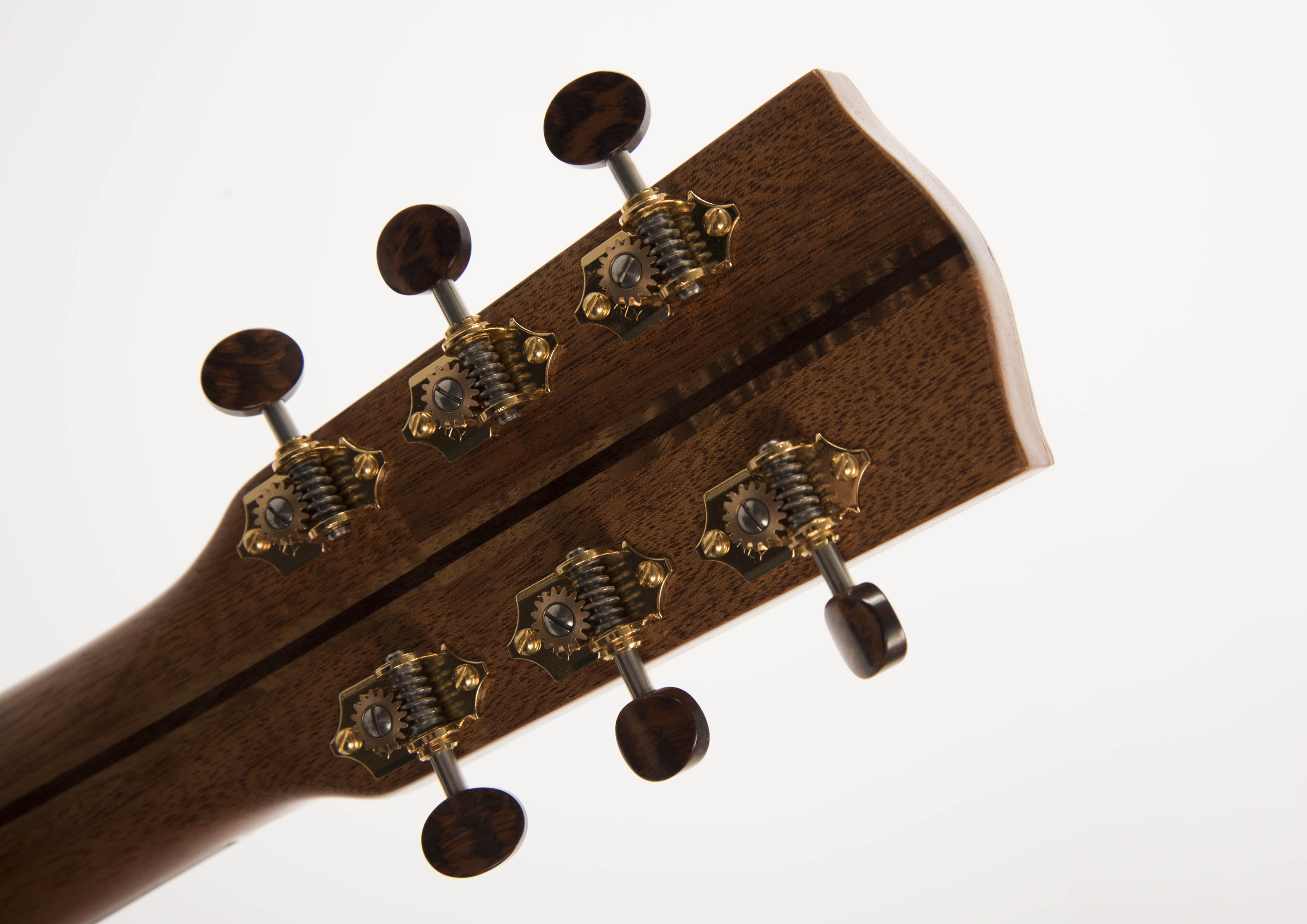 To finish off these fabulous guitars we didn’t spare any expense and went for Waverly open backed tuners with Snake wood buttons to match the bridge pins and strap button.