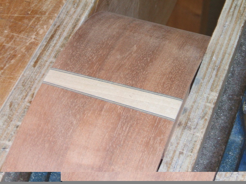 The picture below shows the edge of a Ukulele which has been routed out to receive an Ebony/Boxwood/Ebony set of purflings and a Sycamore binding.